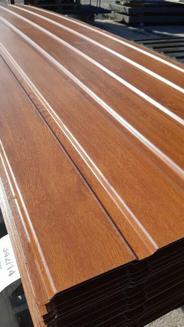 Blacha Trapezowa T-7 w kolorze Złoty Dąb Arkusze 2m, 2.5m długości. Szerokość całkowita: 0.635 m. Szerokość ...