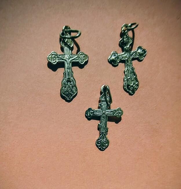 Wyrób wschodni, prawdopodobnie rosyjski. Wysokość 2 centymetry. Waga zestawu 1,30 g.